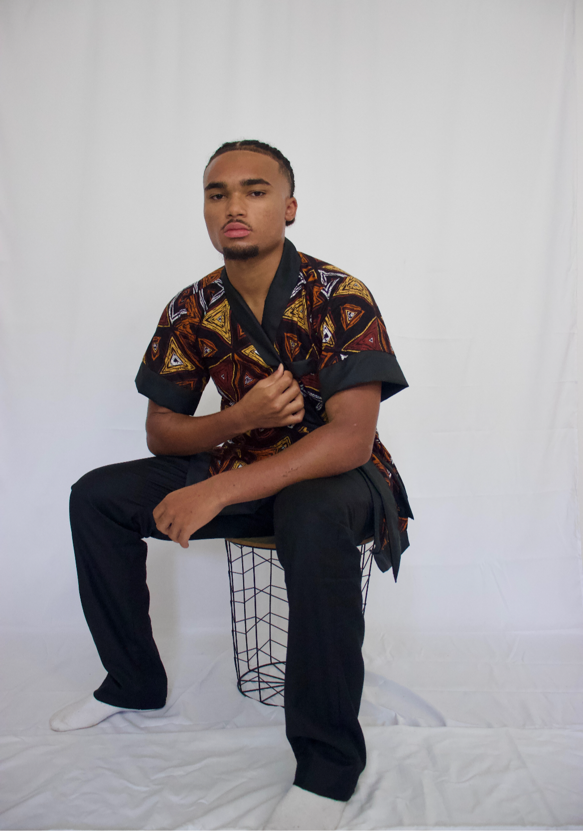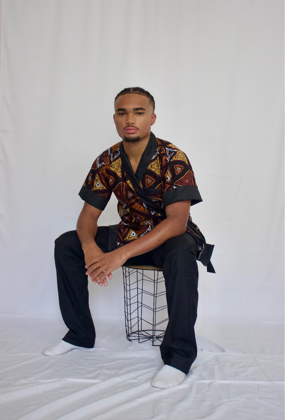 Affirme ton style avec le kimono Komi, une pièce forte qui allie élégance contemporaine et richesse des motifs africains. Confectionné dans un tissu fluide et respirant, ce kimono à manches courtes est orné d’un imprimé géométrique aux tons chauds (marron, ocre, noir et blanc), inspiré des symboles traditionnels.