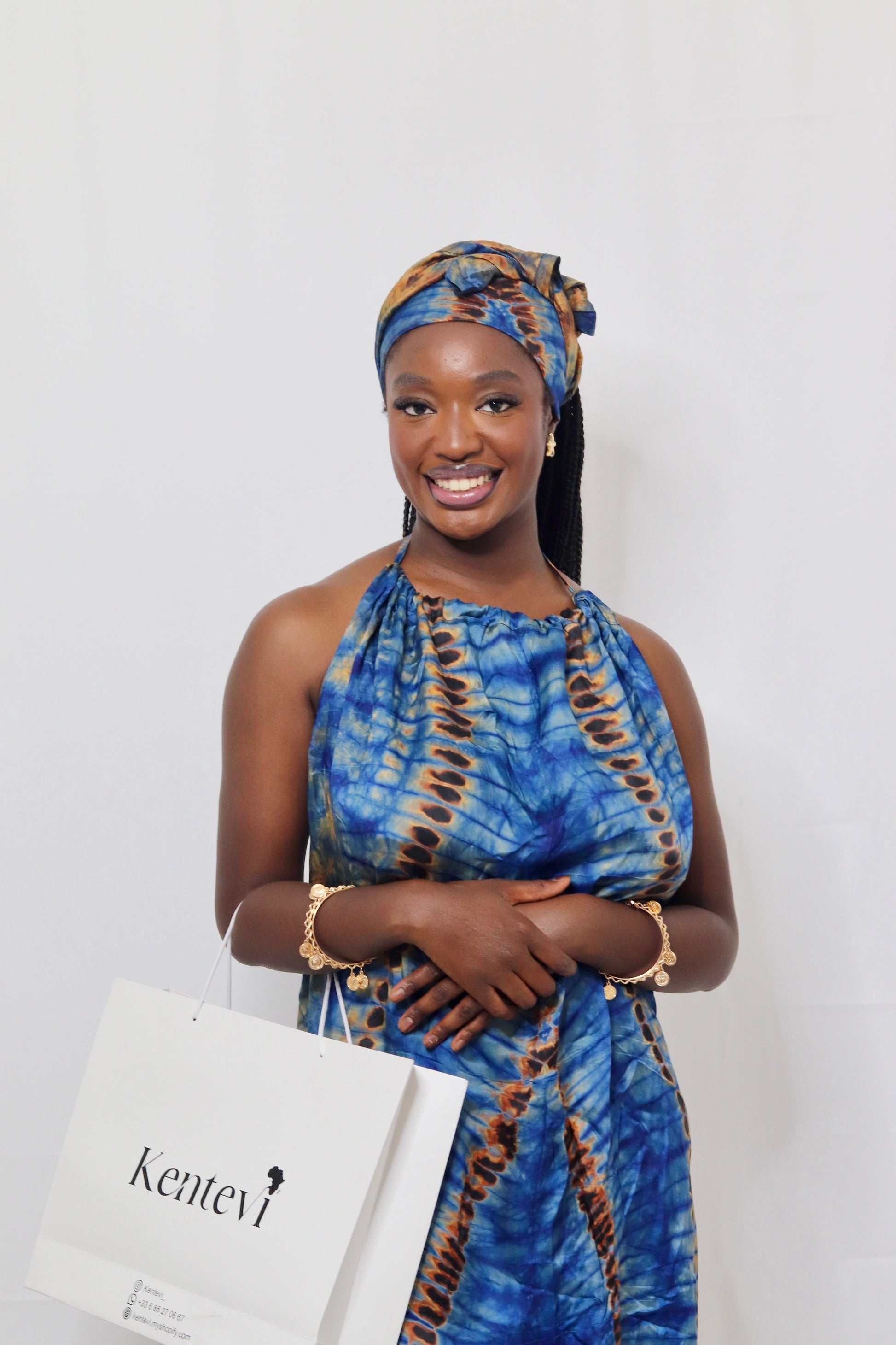 Plongez dans l’univers vibrant de Kentevi avec la robe IFÉ, une pièce phare qui allie tradition et modernité. Confectionnée dans un tissu teint à la main façon kampala , cette robe unique célèbre le savoir-faire textile africain tout en sublimant la silhouette féminine.